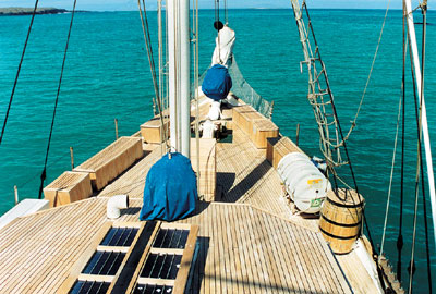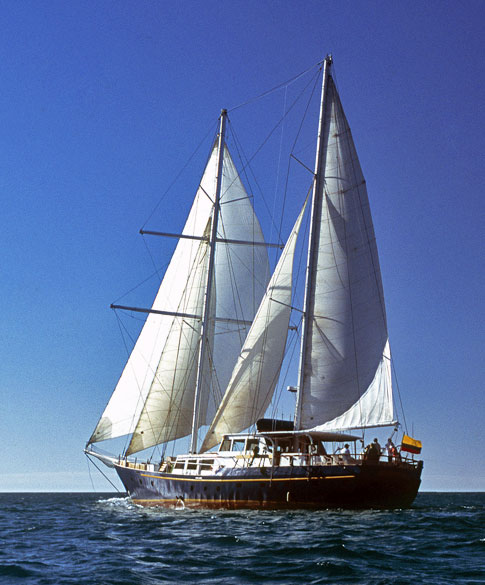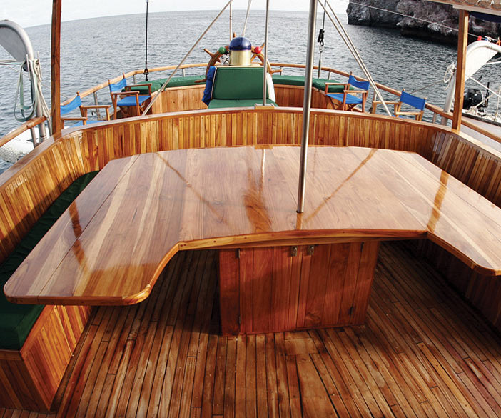 Motoveliero di prima categoria di grande charme, con interni spaziosi in legno ed ampie zone di coperta in teak. Vi sono angoli ombreggiati e spazi all’aperto, dove si può prendere il sole, fare del birdwatching od osservare i delfini dalla prua.