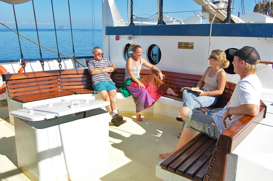 Questo spazioso, incantevole e romantico veliero, con quasi 1.000 metri quadrati di vela, è la soluzione ideale per chi desidera un’esperienza di navigazione a vela per l’esplorazione delle Isole Galapagos con la loro incredibile fauna.
