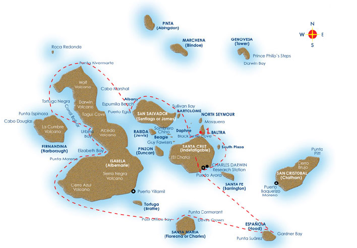 Note: Questo è l’itinerario standard approvato dal Parco Nazionale delle Galapagos. Il tempo dedicato ad ogni visita dipende da fattori ambientali come la fauna e le condizioni del tempo. Eventuali cambiamenti saranno stabiliti dal capitano. Tutti gli itinerari sono soggetti a variazioni, come dettate dal Parco Nazionale delle Galapagos, o dovute a fattori imprevedibili.